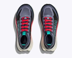 Ready to propel you through gnarly terrain. the Tecton X 3 adds winglets to its carbon fiber plates for extra stability in just the right spots. and two layers of PEBA in the midsole¡ªour lightest. most resilient compound. Redesigned lug shape and positioning on a Vibram Megagrip with Litebase outsole provide better traction. while a dynamic vamp allows feet to splay as the miles fly by. Topping it off. a knit collar extends up from the tongue like a gaiter to mitigate trail debris. and a lightweight Matryx textile upper makes this version more durable and trail-worthy than ever.